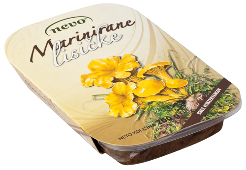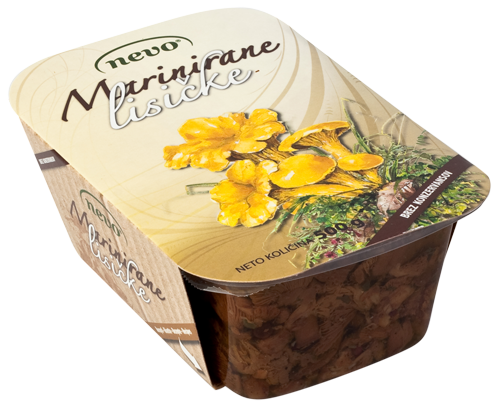gozdne gobe lisičke, deviško oljčno olje, vinski kis, začimbe