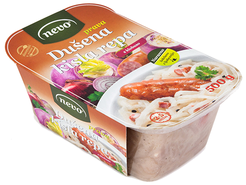 Dušeno kislo zelje ali repo s klobaso pripravimo v loncu ali mikrovalovni pečici. Odstranimo kartonsko embalažo, z nožem obrežemo folijo na posodici in vsebino prelijemo v lonec ter segrejemo do vrenja. Kadar jed segrevamo v mikrovalovni pečici, folijo na posodici pred segrevanjem nekajkrat preluknjamo in segrevamo 2 - 3 minute pri moči 800 W. Z nožem obrežemo folijo in postrežemo. Dober tek!