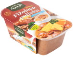 gobe v spremenljivih deležih 56 % (jurčki, štorovke, maslenke, dežniki), zelenjavna osnova, čebula, rastlinsko olje, korenje, pšenična moka, jedilna sol, začimbe, česen, poper, kislina: citronska kislina