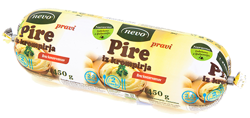 Pire iz krompirja Nevo je narejen iz skrbno izbranega svežega slovenskega krompirja. Pripravljen za takojšnjo uporabo. Pire iz embalaže stisnemo v lonec in ga med segrevanjem pri zmerni temperaturi dobro pregnetemo. Med mešanjem ga lahko po želji dodatno obogatimo s koščkom masla ali mlekom in postrežemo po želji. Dober tek!